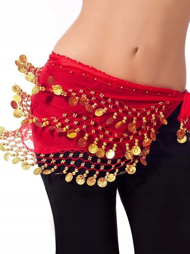 Chusta do tańca brzucha - kolor czerwony + złote monetki