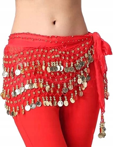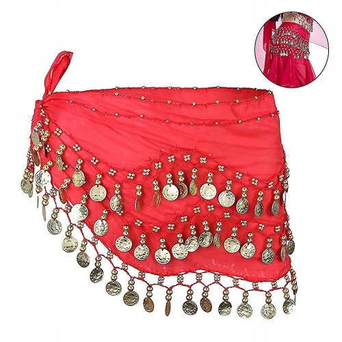 Chusta do tańca brzucha - kolor czerwony + złote monetki